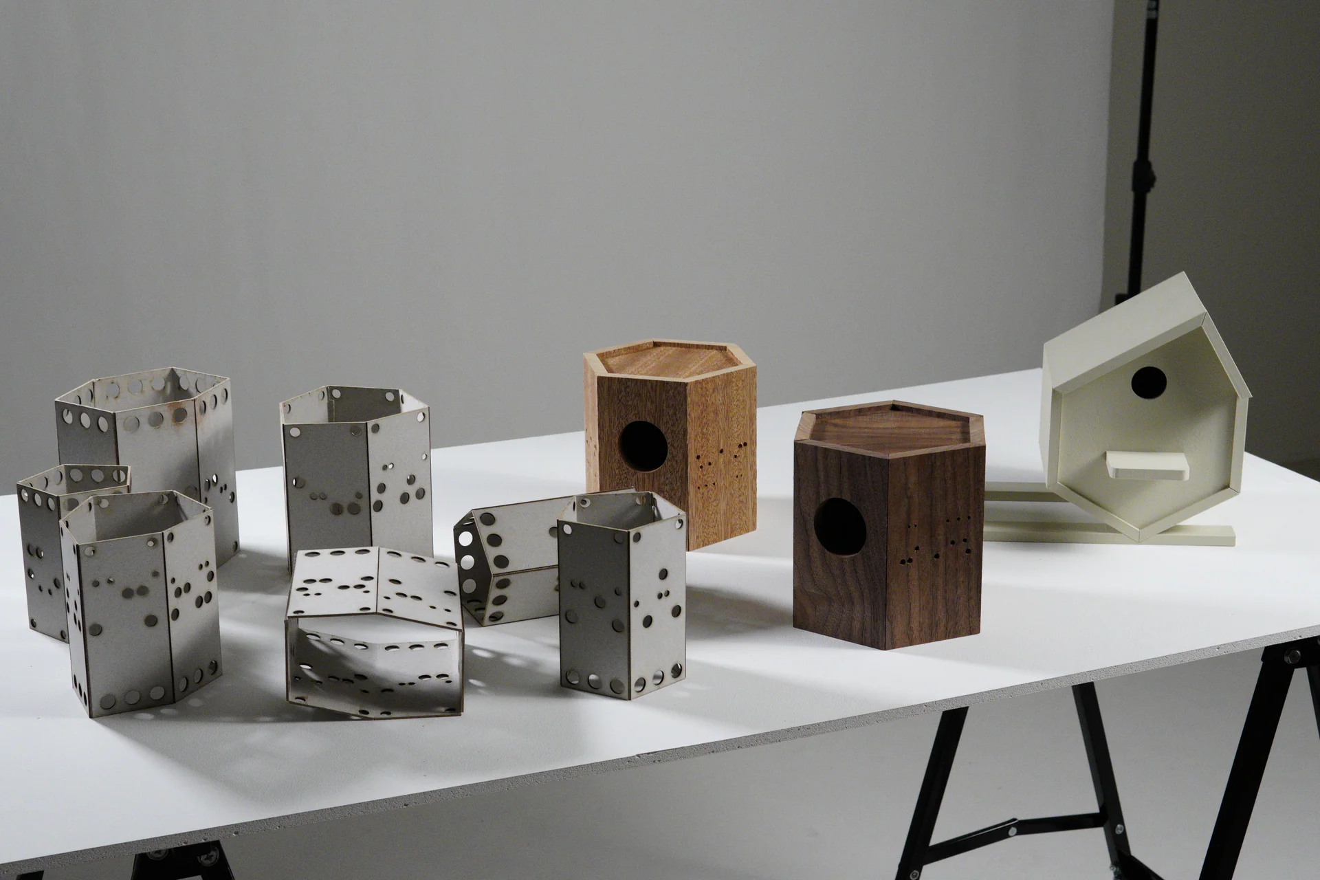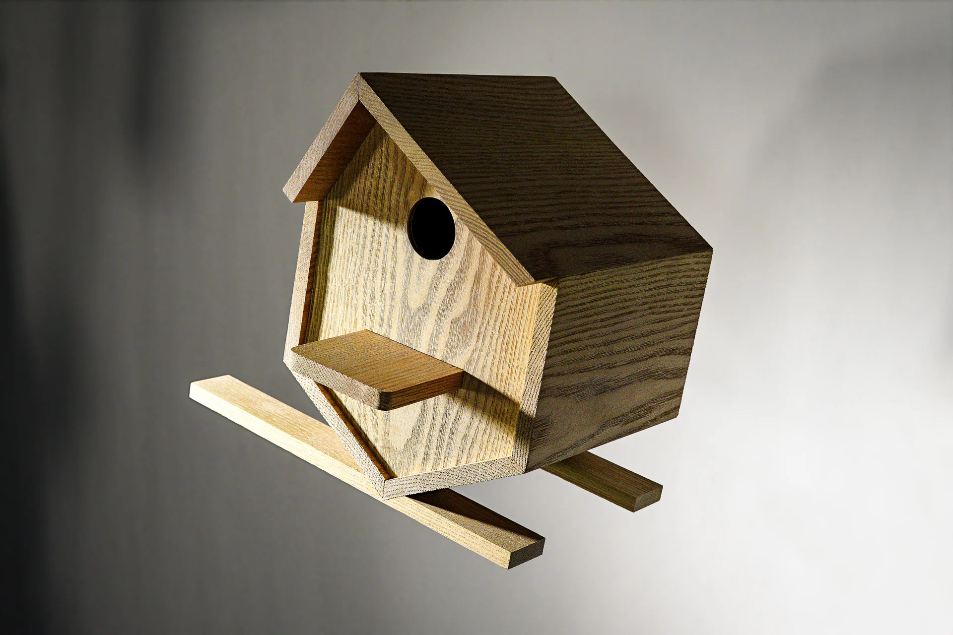 They are the most honest users: no compromise, no politeness. I studied enclosure, interior temperature, entrance size. Form followed that research — asymmetric roof for drainage, obtuse hexagon for the sense of closure they respond to, fewer side openings for stable heat.